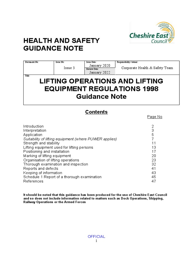 LOLER Regulations Guidance Note PDF Crane (Machine) Occupational